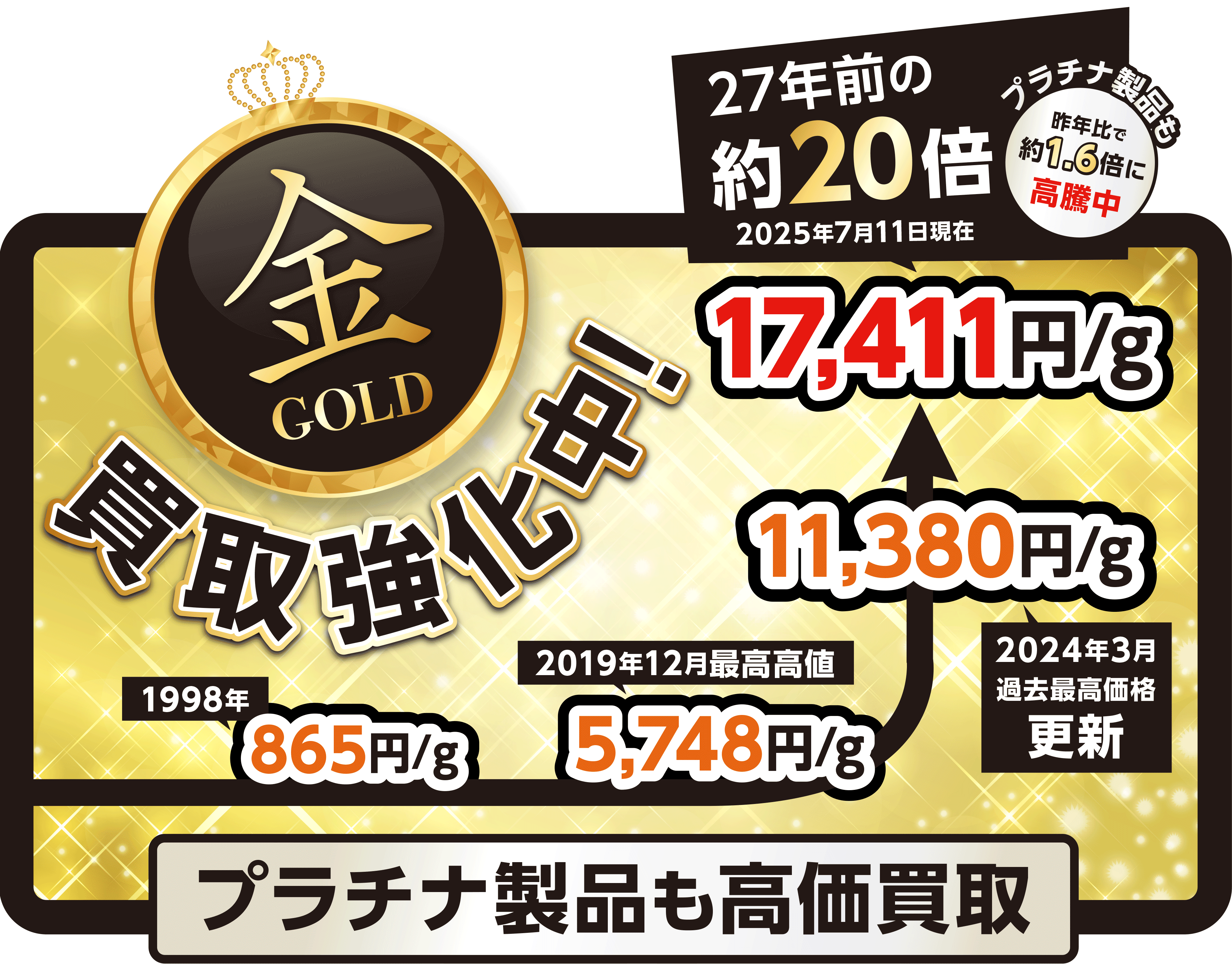 そのため「今が売り時!」金・プラチナの製品をお持ちください。